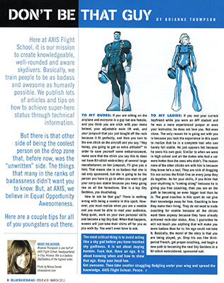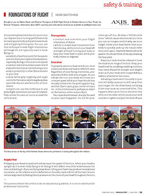 This article looks at the Belly to Head-up Transition and focusses on the technical execution as well as on how it should feel to the jumper. It also includes helpful hints on how to remedy typical problems that arise when a jumper first tries the maneuver.