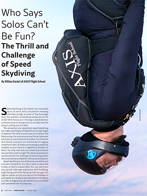 Article about the USPA National Championships 2023, including speed skydiving, featuring – among others Brianne Thompson and Niklas Daniel.