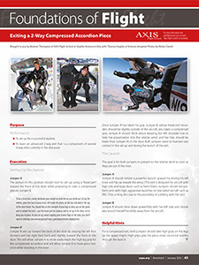 Set up for a successful skydive and learn an advanced 2-way exit that is a component of several 4-way exits currently in the dive pool.