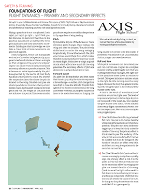 This installment focuses on defining a common and precise language for describing movements in the air, which is of great benefit, especially during debriefs and when describing events. This lays the basis for the next installment in this series, which will take a closer look at how a parachute moves around its three principal axes.