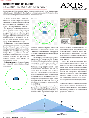 This month, we pan out to see a slightly bigger picture: a canopy pilot's energy footprint. The two types of energy available to us are altitude (potential) and speed (kinetic). How a pilot chooses to manage these affects their flying experience. When returning from a long spot, the pilot must find a balance that allows maximization of range.